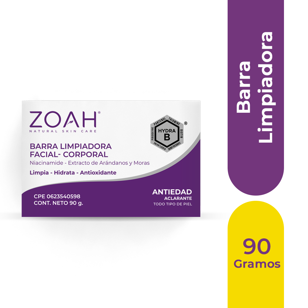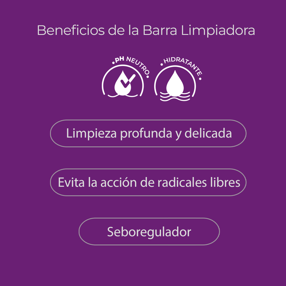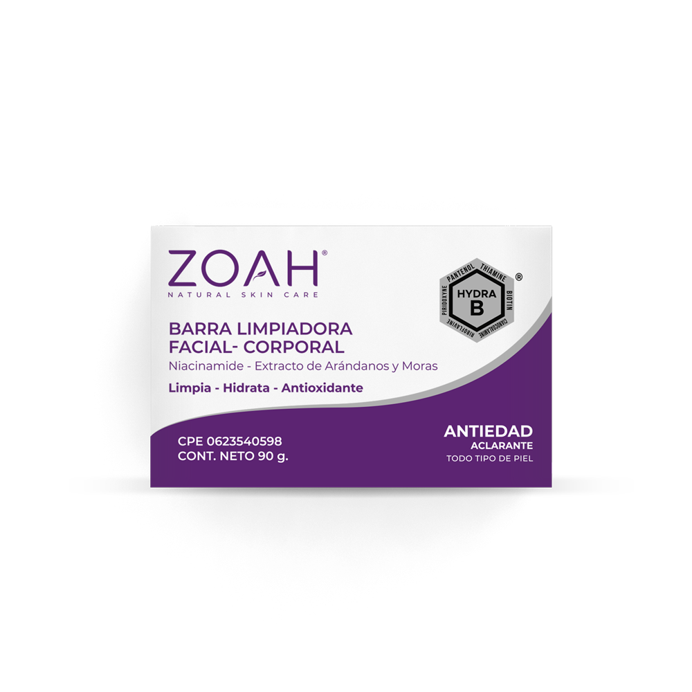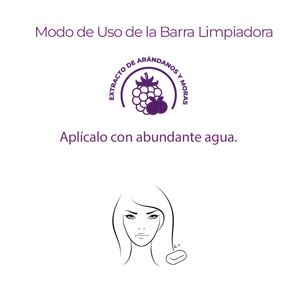 Delicada barra limpiadora facial, formulada a base de Hydra B, extracto natural rico en complejo vitamínico B y extractos de Arándanos y Mora, aporta limpieza e hidratación a la piel de tu rostro y cuerpo, sin importar cual sea tu tipo de piel, con efectos aclarantes y antioxidantes que te protegen de los agentes nocivos del ambiente.