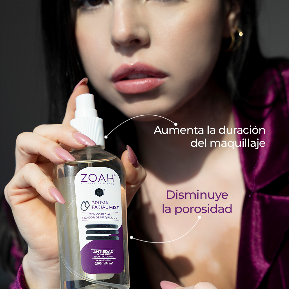 Aplica antes del maquillaje para preparar tu piel o después para fijarlo. También puedes usarlo después de limpiar el rostro.