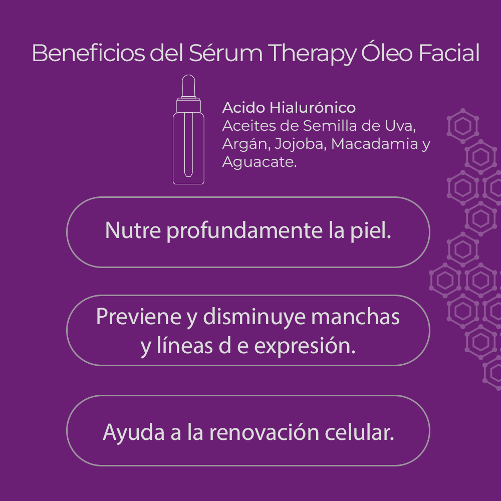 Es una terapia profunda de nutrición y suavidad con una combinación de aceites vegetales que aportan lo necesario para lucir un rostro renovado e iluminado.